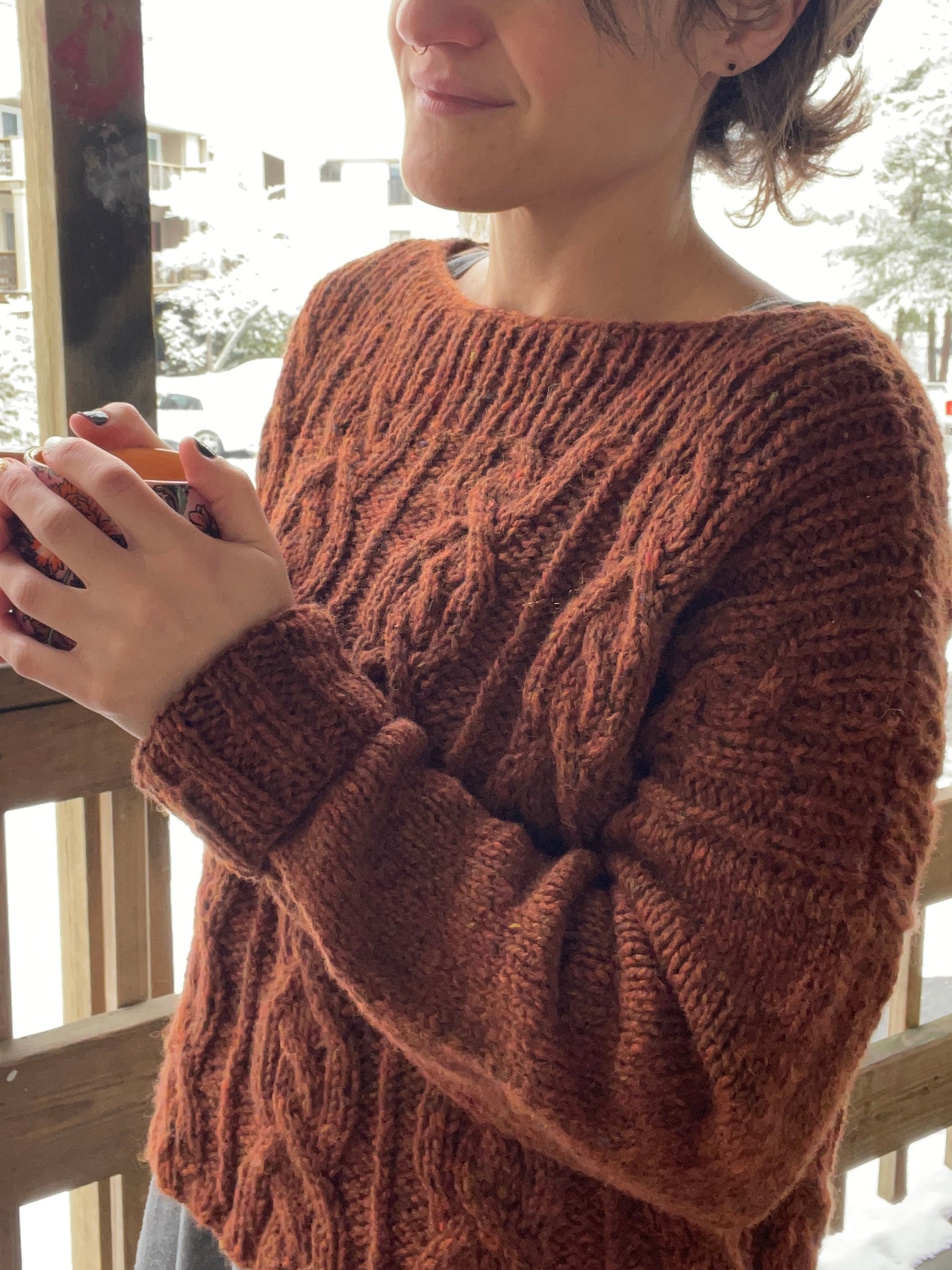 • Stitch markers, cable needle, tapestry needle, row counter (optional), waste yarn or stitch holder